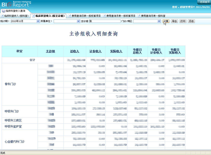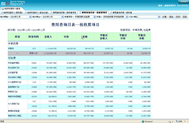 對(duì)于收入的統(tǒng)計(jì),主要從科室角度進(jìn)行,如分科室統(tǒng)計(jì)收入情況,統(tǒng)計(jì)收入結(jié)構(gòu)情況,并將科室收入按照開(kāi)單、執(zhí)行、計(jì)價(jià)、實(shí)收等數(shù)據(jù)進(jìn)行統(tǒng)計(jì)。