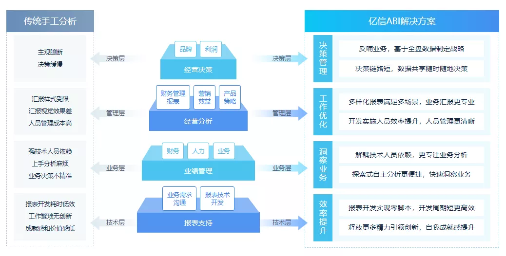 作為國內(nèi)最早深耕BI領(lǐng)域的軟件公司,億信華辰致力于為政企客戶提供一站式數(shù)據(jù)分析平臺(tái),此次獲獎(jiǎng)的億信ABI滿足用戶從數(shù)據(jù)填報(bào)、ETL數(shù)據(jù)處理、數(shù)據(jù)建模到數(shù)據(jù)分析、數(shù)據(jù)可視化、移動(dòng)應(yīng)用等各個(gè)環(huán)節(jié)的功能需求,覆蓋數(shù)據(jù)分析完整流程,幫助用戶實(shí)現(xiàn)更深入的業(yè)務(wù)洞察力。