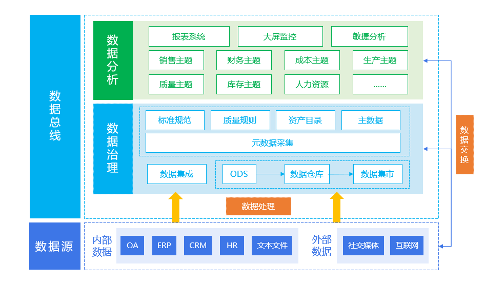 大多數(shù)企業(yè)在信息化建設(shè)之初缺乏規(guī)劃,在信息化推進(jìn)的過(guò)程中,各信息系統(tǒng)分散建設(shè),信息系統(tǒng)之間的使用和數(shù)據(jù)管理各自獨(dú)立。這些系統(tǒng)就如同一個(gè)個(gè)“數(shù)據(jù)煙囪”一般,各系統(tǒng)間數(shù)據(jù)定義不標(biāo)準(zhǔn),信息不能互相聯(lián)通,信息上的非共享性導(dǎo)致數(shù)據(jù)價(jià)值難以充分發(fā)揮。