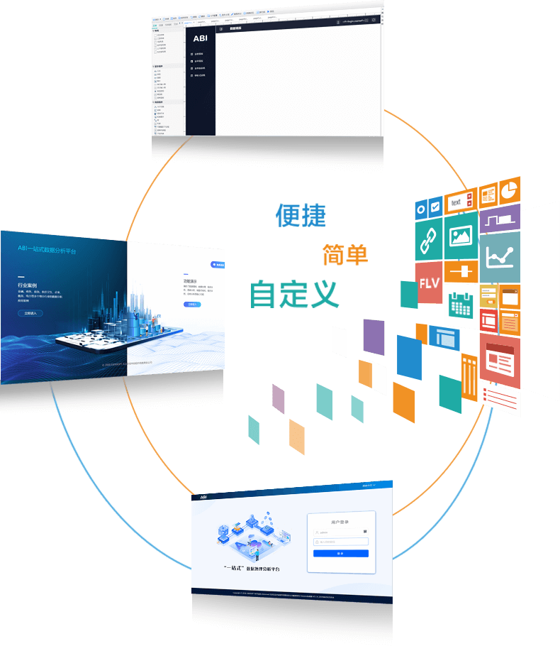 億信ABI內含便捷的門戶定義工具,用戶只需通過簡單的拖拉控件到定義門戶區域,就能自己定義個性化的門戶,能夠簡單實現各種復雜的自定義門戶,無需開發人員以及美工介入。