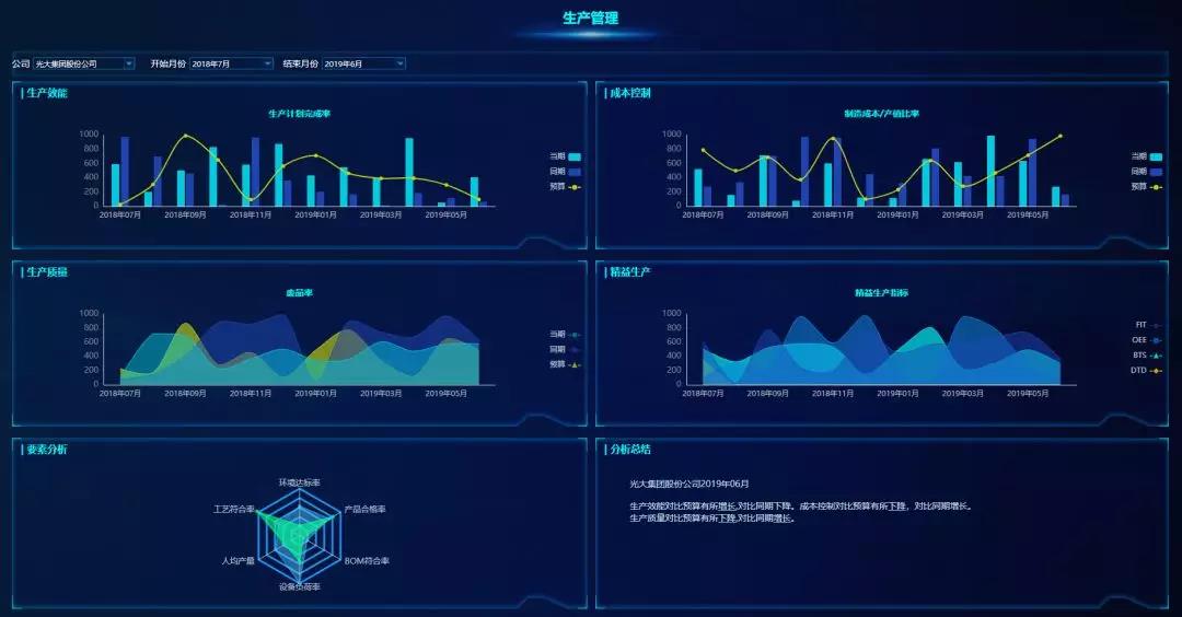 制造企業(yè)可以分析生產(chǎn)類數(shù)據(jù),整合海量數(shù)據(jù)資源,搭建統(tǒng)一共享分析平臺(tái),激發(fā)業(yè)務(wù)人員分析思路,提供經(jīng)營(yíng)決策數(shù)據(jù)支撐。除此之外,作為生產(chǎn)制造行業(yè)也可以從企業(yè)的角度看財(cái)務(wù)數(shù)據(jù)或者其它具體業(yè)務(wù)的分析。
