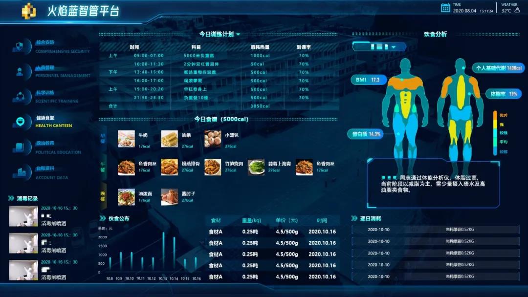 根據該消防救援站的分析展示訴求,結合數據調研情況,緊扣消防救援業務,以管人、定物、抓事、謀戰為主要抓手設置了六大維度的工作場景,選取核心的業務數據指標,實現炫酷可視化展示。讓管理者能夠清晰了解消防救援站基本情況以及消防救援隊員、隊站、食堂、訓練等管理情況,推動隊伍正規化建設。
